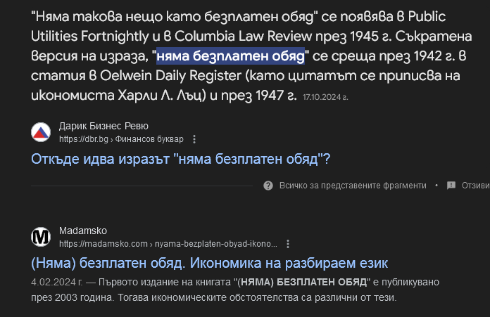 Ха, мн.любопитно ми стана и понеже не знаех, употребих времето за Гуг - 1. излиза тутакси; 2. фразата е икономическа (не идва от ресторанти) - според Гуг