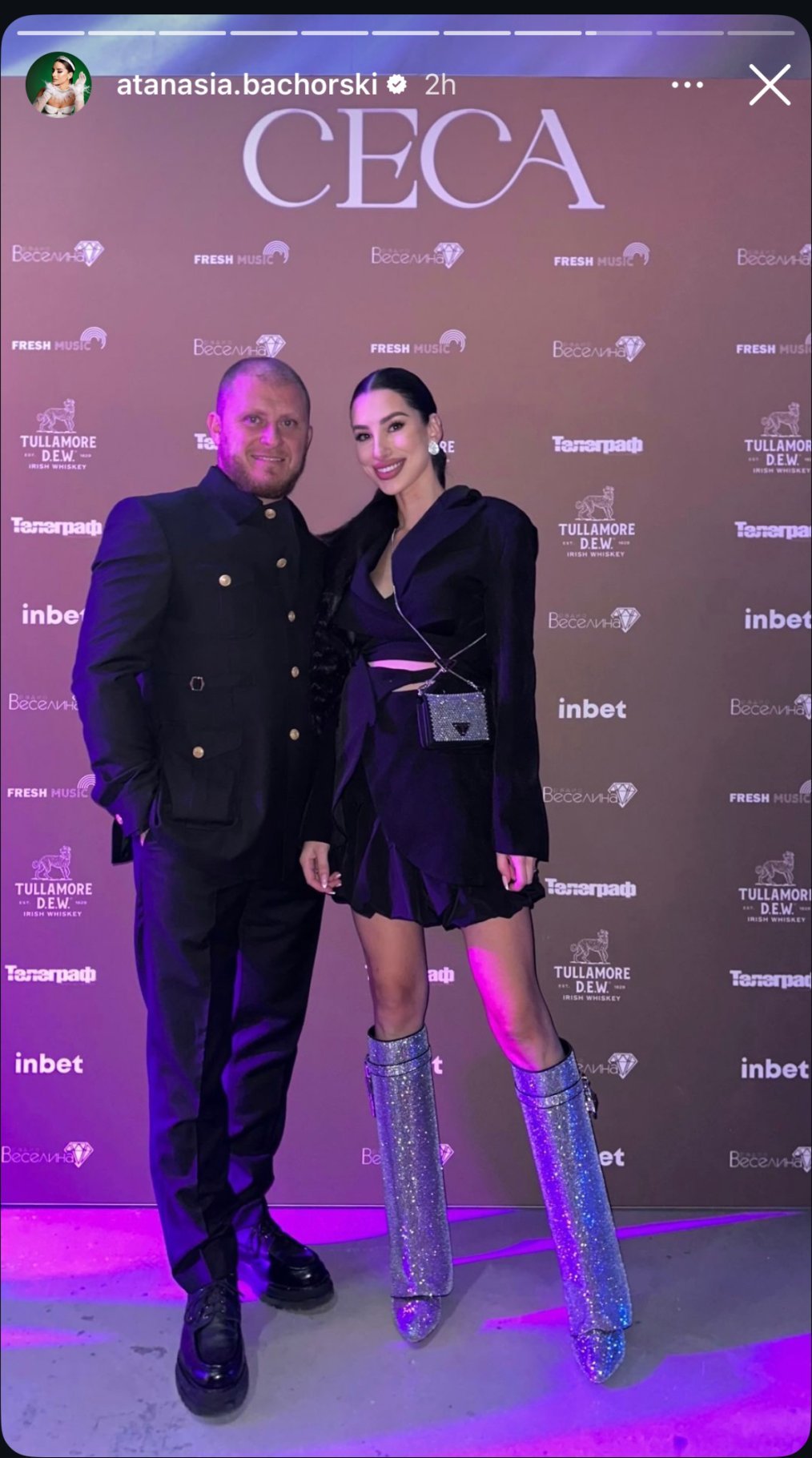 И двамата на токчета. Не я разбирам Атанаска, хем е висока хем не се отказва от токчетата, въпреки, че мъжът и е не е висок. Ако моят мъж му кажа да обуе обувки на платформа ще ме помисли за ненормална. Този човек вместо да каже - жена висока и красива си, носи елегантни и красиви обувки, той носи платформи, за да са равни на височина. Тези и двамата са толкова ЗА добрият външен вид, че нищо не може да ги спре да се излагат. Факта в 7/8 месец да си в Арена на концерт изобщо няма да го коментирам. И познайте тези ботушки дали са вторият и чифт Givenchy или турски реплики…