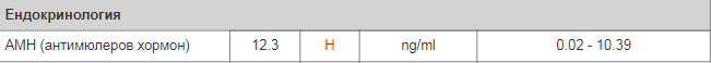 АМХ 12.3 при референтни 0.02 - 10.39 (Геника). Всеки път питам за ПКЯ - отхвърля се, последно от д-р Николай Попов във Вита. Същият каза, че проблем може да е това, че фоликулът "узрява" прекалено късно като дни в месечния цикъл, което може да бъде проблем с качеството му.