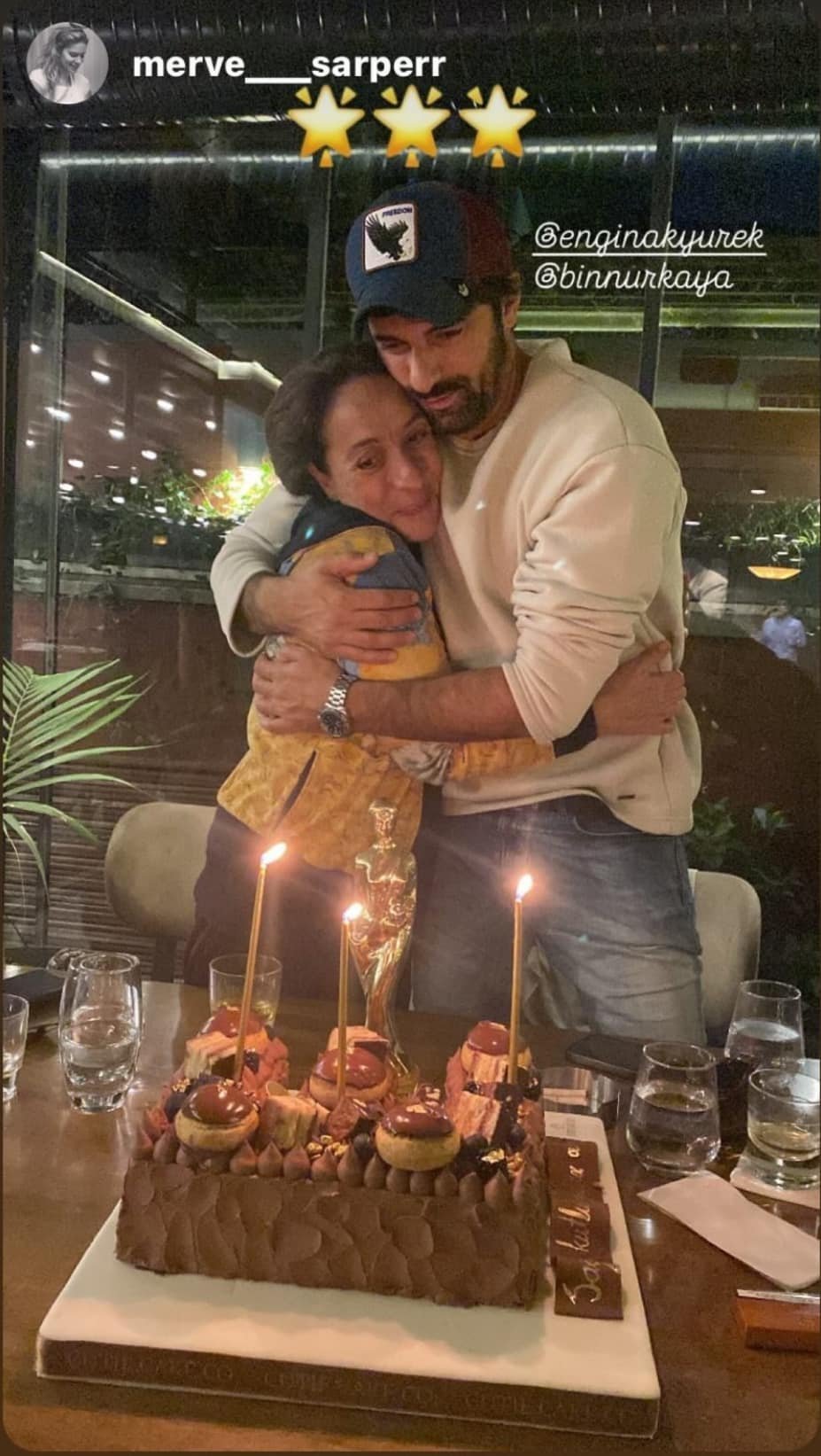 Биннур Кая също присъства на честването на 43-тия рожден ден на Енгин Акюрек. Акюрек също поздрави Кая за Златния портокал, който получи вчера.