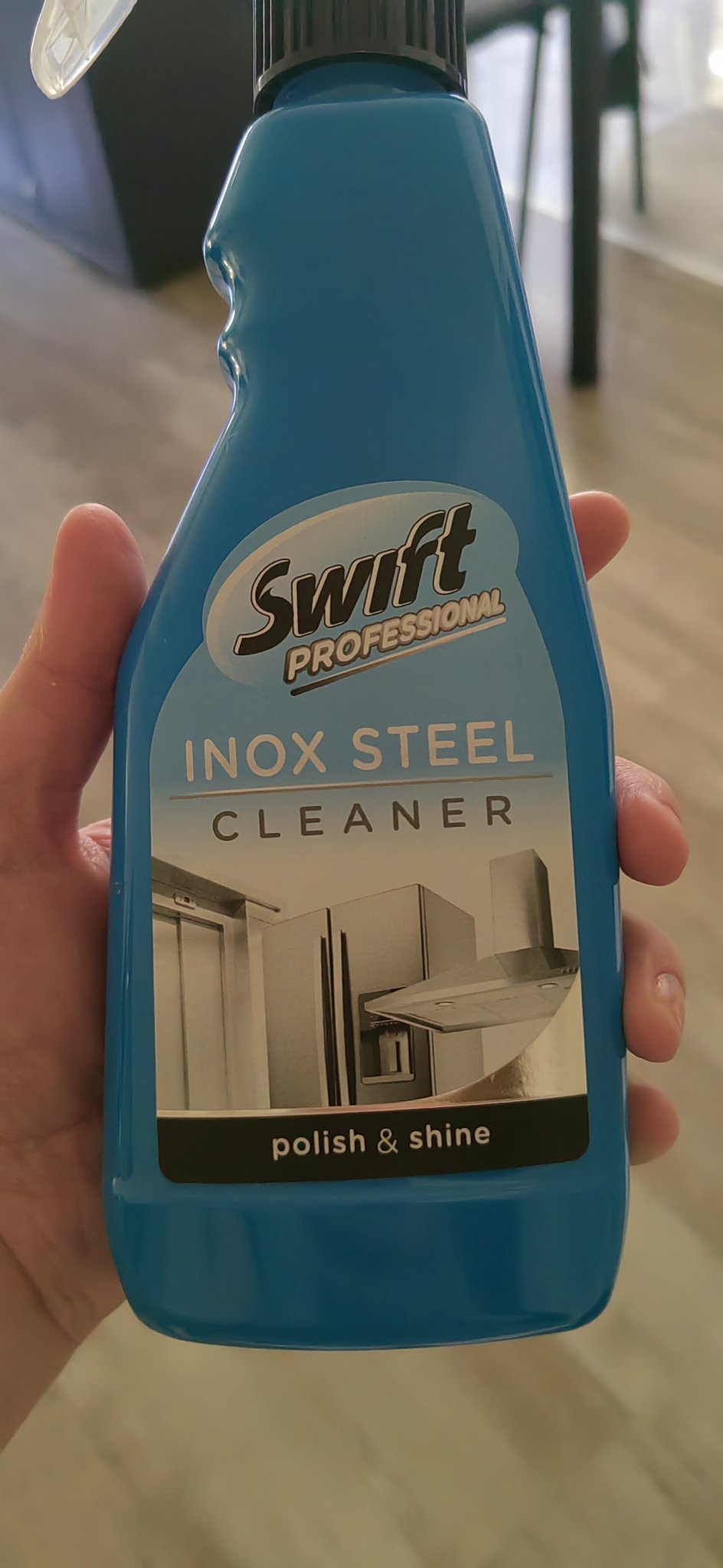 Сега нямам, но преди съм лъскала иноксовите части с препарата за прозорци, нищо специално. Предполагам че има значение и какъв уред и колко от тези повърхности се пипат, пръски дали има, мазно и прочие. При мен ставаше дума само за следи от пипане с ръце.