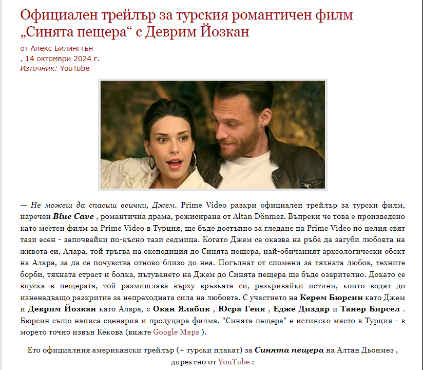 Статия на TalkieFlix: „Синята пещера: Незабравимо пътешествие на любов и открития 2024 г.“