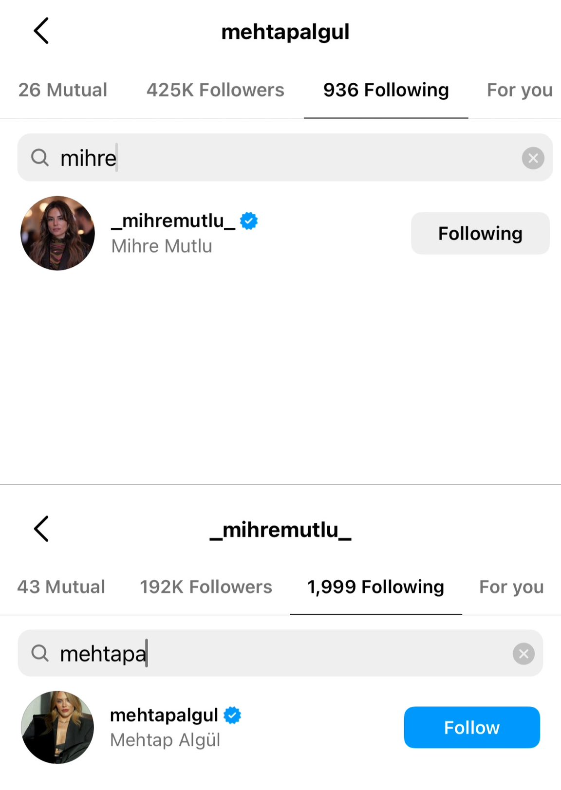 и нещо интересно - Вчера бившата приятелка на Керем - Мехтап и Михре са се последвали в Инстаграм 😎