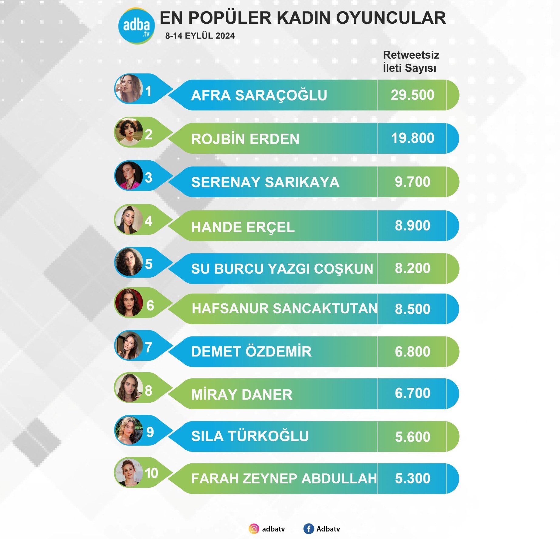 Адба обяви кои са най-популярните актриси в социалните мрежи! (8-14 октомври). Ханде тази седмица заема 4-та позиция Simple Smile