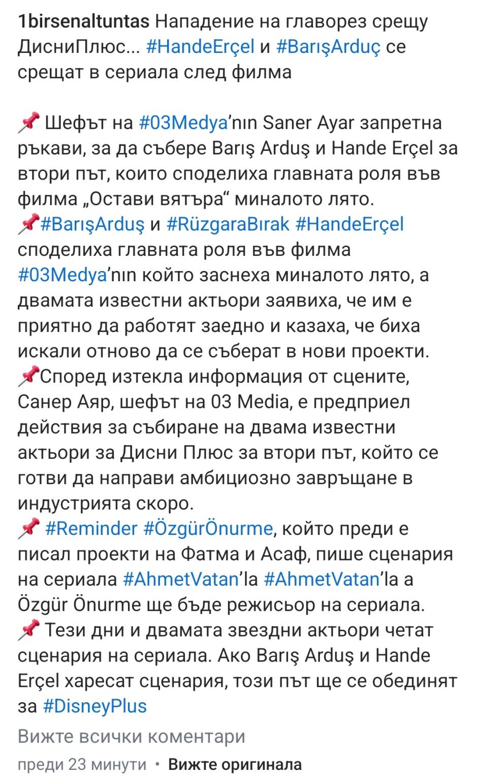 Идвам с официална новина от Бирсен, ще си имаме сериал с Баръш Ардуч: