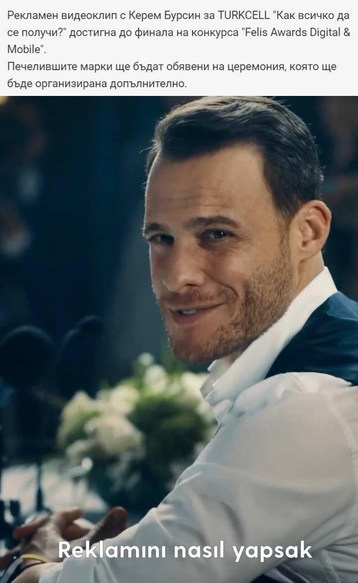Току що изгледах интервюто с Бирсен. Сладури. Керем си му личи, че не стъпва по земята, къде от любов /ох, как се засрами/, къде от вълнение по предстоящата премиера. И с Деврим много са си паснали, много добре се разбират /с гаджето на Деврим станали първи приятели/, надяват се отново да работят заедно.