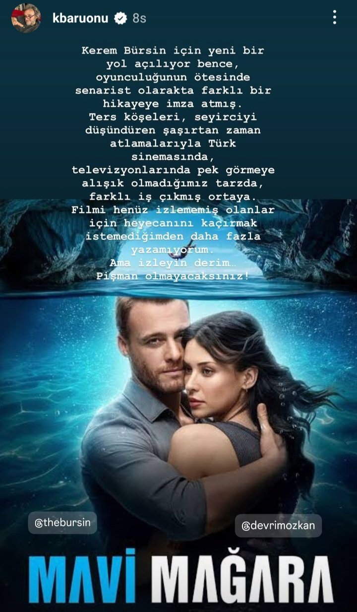 Режисьорът Къванч Баръйоню написал доста хубави похвални думи за Керем и "Синята пещера"