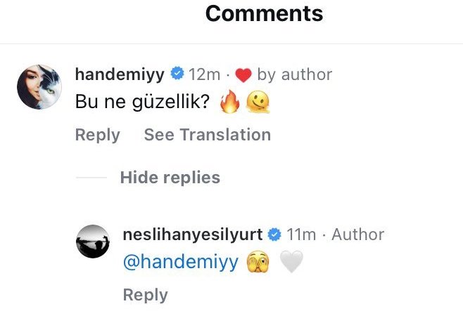 Ханде хареса и коментира публикацията на Неслихан Simple Smile