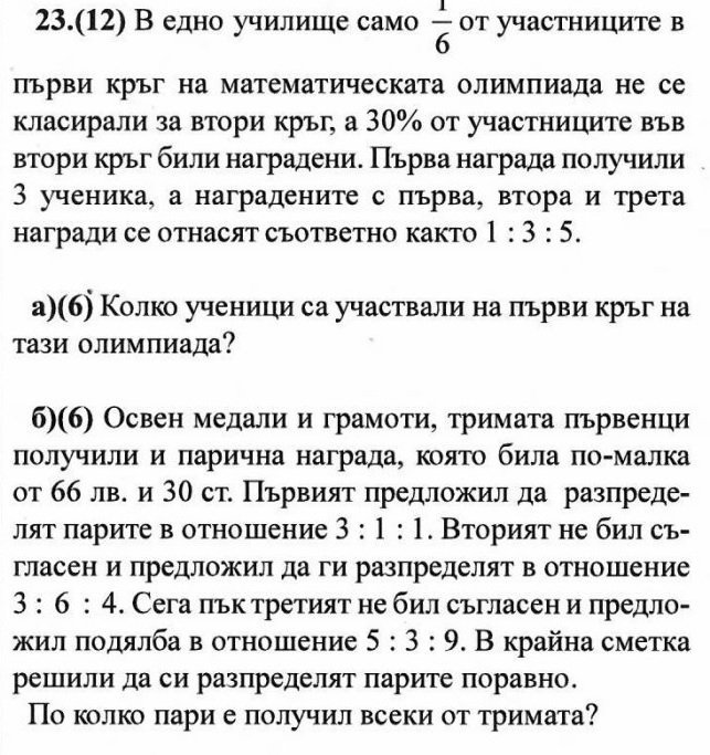 Наградата не е цяло число... т.е. всеко от тях може да е получил нещо със стотинки накрая...