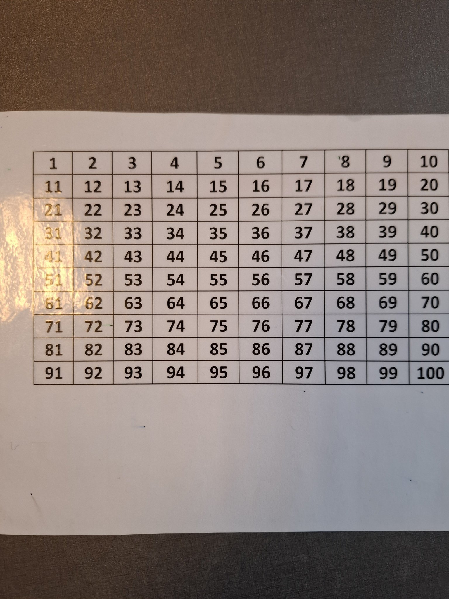 Такава таблица би ви помогнала и за събиране и за изваждане. Също ще онагледява преминаването през десетици. Може, засега, да си направите до 20. Слага пръстчето на умаляемото, отброява докато получи разликата. Може и да си отбелязва с маркер за бяла дъска, ако се ламинира, а после да трие.