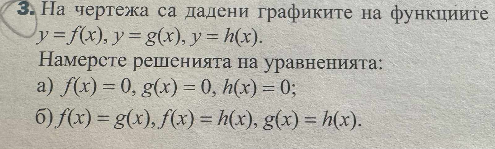 б) Две по две функциите са равни в пресечните точки на графиките им .