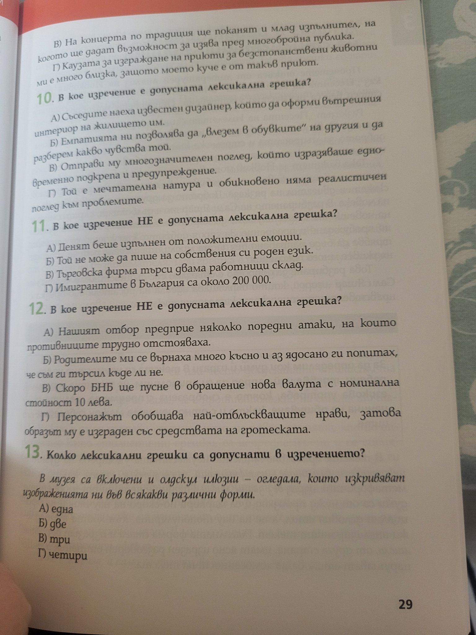 А сега отговор на въпроса: Лексикална грешка има в А. Няма вътрешен интериор. Интериорът е оформяне на вътрешното пространство.