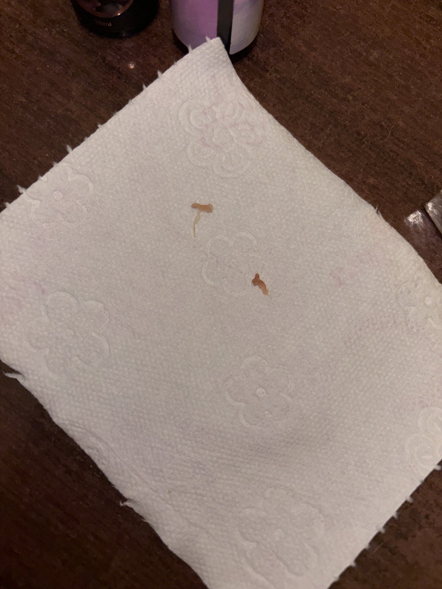Вече трети ден имам болки а точно преди 5мин след като пишках и се избърсах го имаше това с бледо розова кръв . Преместих тези парченца на чиста хартия за да се видят .