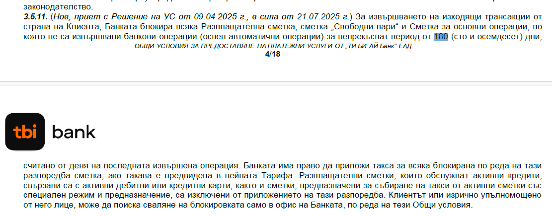Аха, тоест на 180 дни трябва или да внеса пари по сметката ми Неон или от нея да платя или препратя към друга моя сметка пари..