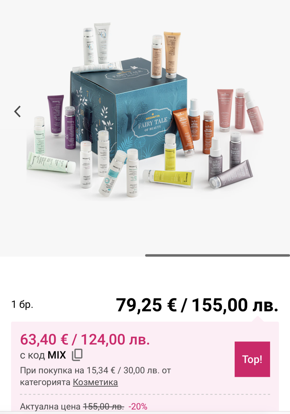 Аз загледах и този календар на Медавита. Ползвала съм техни продукти и са хубави. Да, малко минита са, но пък така имаш възможност да опиташ различни неща. Много са удобни минитата при пътуване.