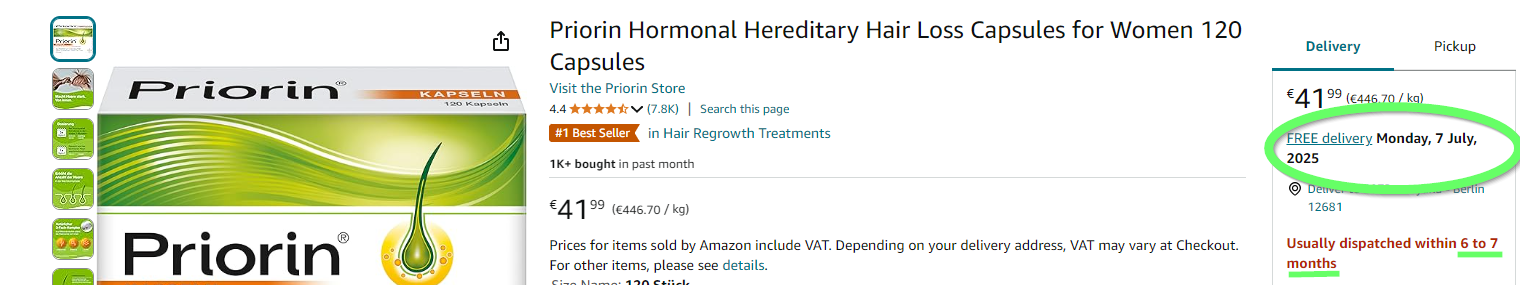 И на по-голямата няма да е такъв срокът, явно е временно изчерпана. Срок за доставка от няколко месеца излиза на всичко, което не е налично в момента, но Приоринът е от продуктите, които от години постоянно се поддържат в наличност в Амазон, така че скоро ще го заредят.