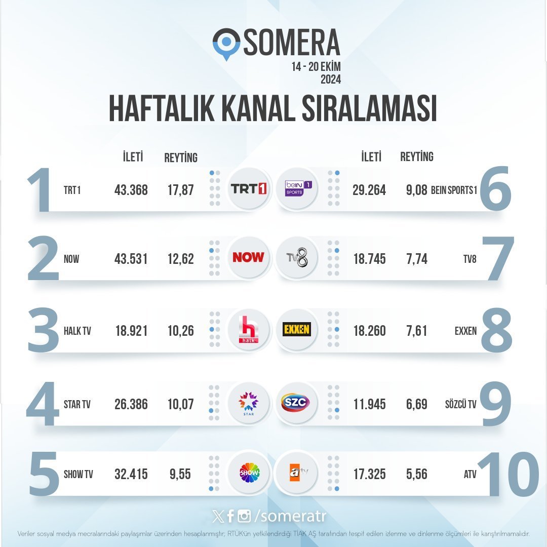 TRT1 e държавна телевизия. Ако става дума за цялостна програма, нормално е, там са повече информационни и спортни програми. Ако става дума за неделната им филмова програма, там отдавна в неделя върви един патриотичен филм за турското разузнаване с устойчиво висок рейтинг.