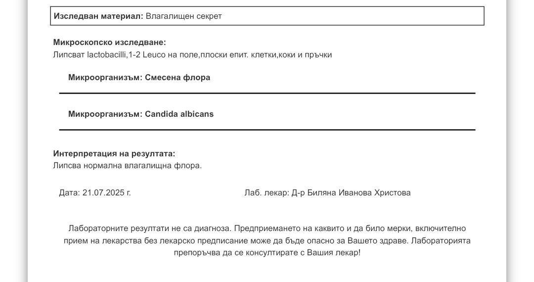 Да се похваля - пуснах си ПСР в Геника, всичко чисто, имам си лактобацили. Само малко Уреплазма.