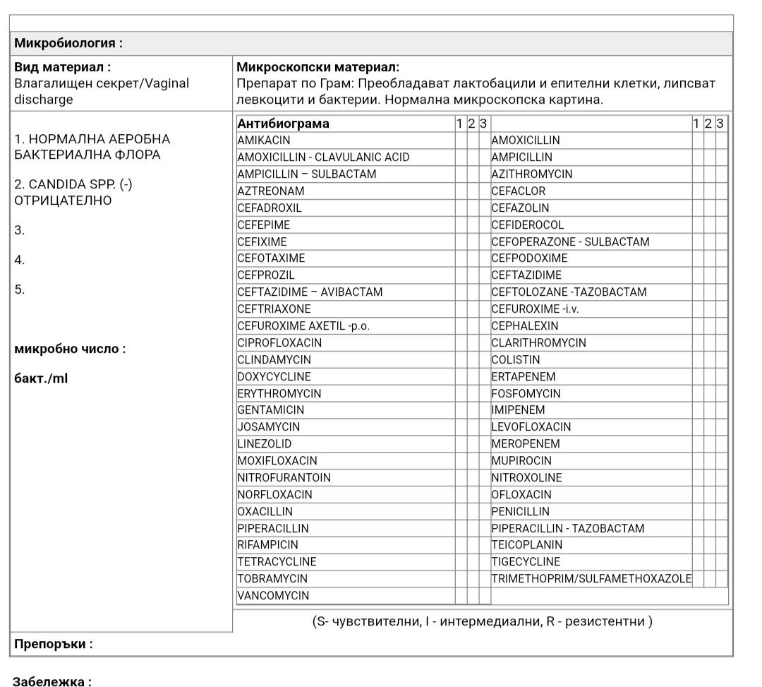 След като се преместих в Надежда, да диря читави специалисти по гъбични инфекции, се видя , че съм резистентна на всичко осен нистатин. Започнаха около половин година лечения с Нистатин, Макмирор след всеки цикъл. След това прием на "някакви" лактобацили. Тук не съм сигурна дали беше след поредното лечение с Макмирор или след борна киселина 21 дни, лактобацилите ми изчезнаха от януари 2024. Съответно се появиха кокобацили, Гарднерела. Последва лечение с Флумизин + Гинуфилус. На всеки следващ месец положението беше същото, та и по-зле.