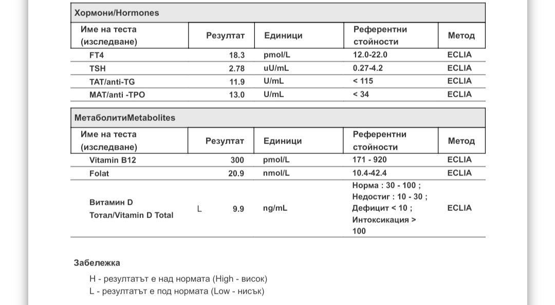 Здравейте,много благодаря за отговора. Видях и B12, просто витамин Д адски ме шашна..Имам хормони да,но от преди една година,на 3-ти ден от МЦ.