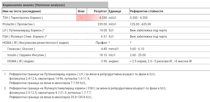 Здравейте! Бихте ли ми помогнали в разчитане на хормонални изследвания, направени са заради два пропуснати