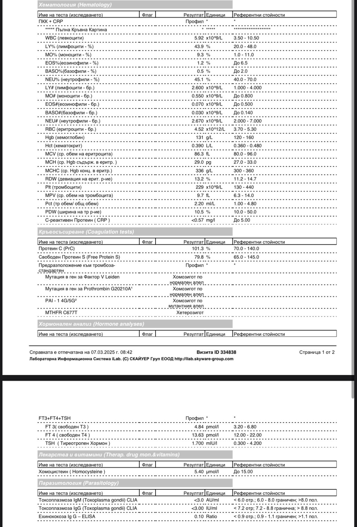 Какво ще кажете за тези резултати, направени са месец след абразио(зряло развитие в 9г.с) Интересува ме предимно тромбофилията, тъй като виждам, че имам мутации