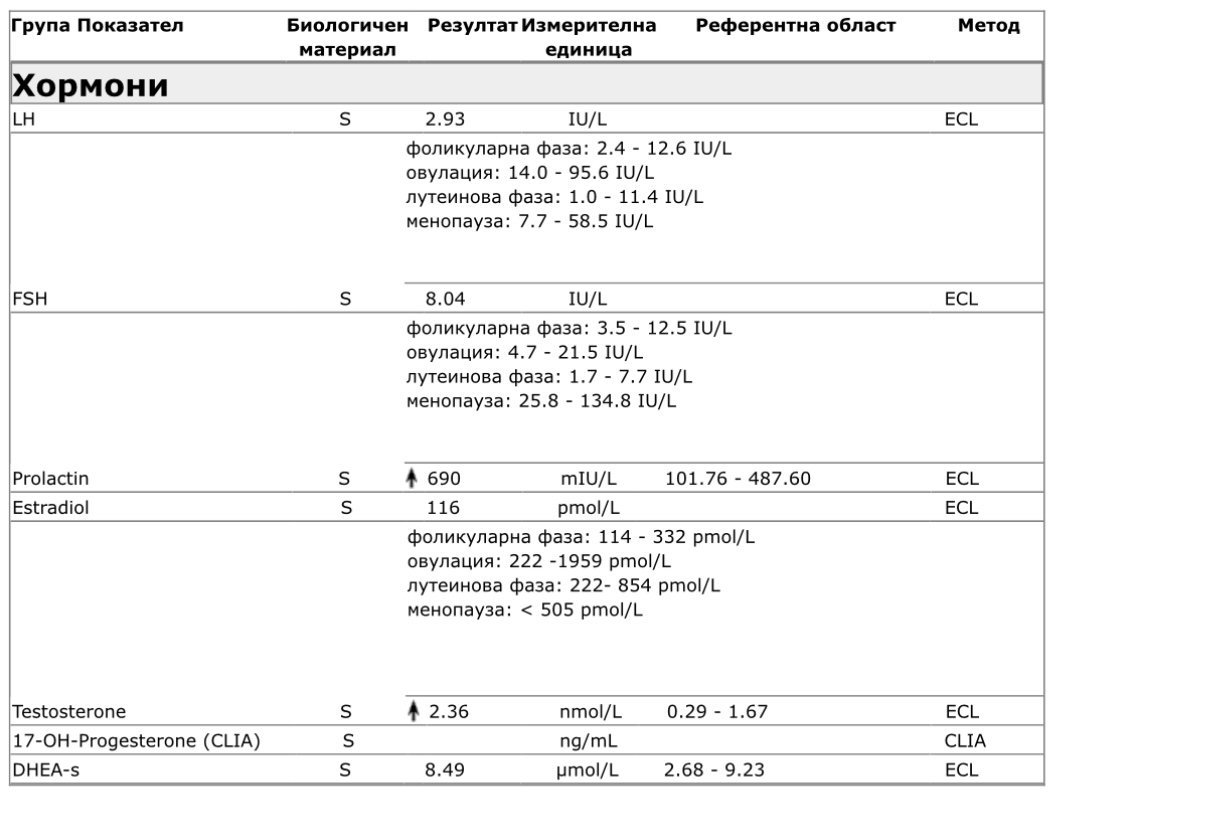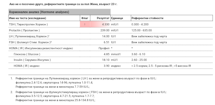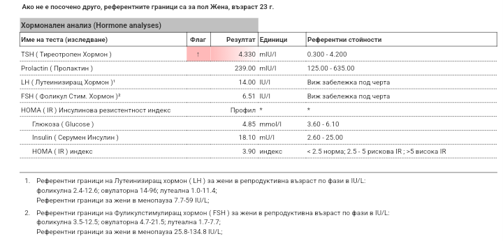 Здравейте, може ли мнение. Жена на 24г., 53кг., изследванията са на 3 ден от МЦ. Знам, че пролактинът не се пуска сега, но беше включен в пакета.