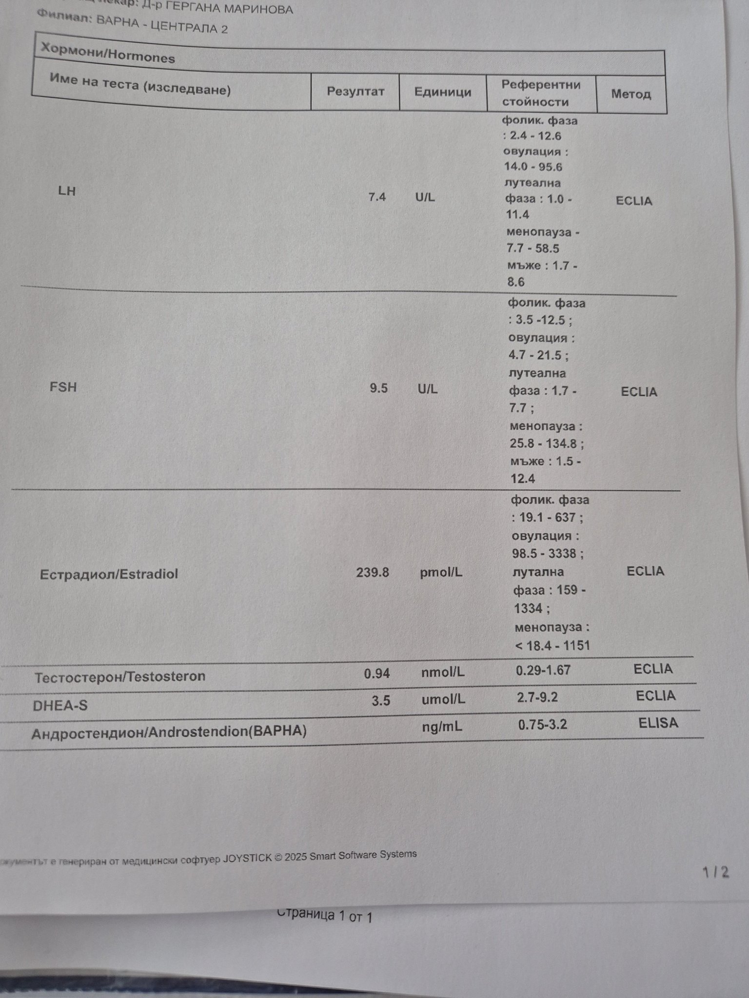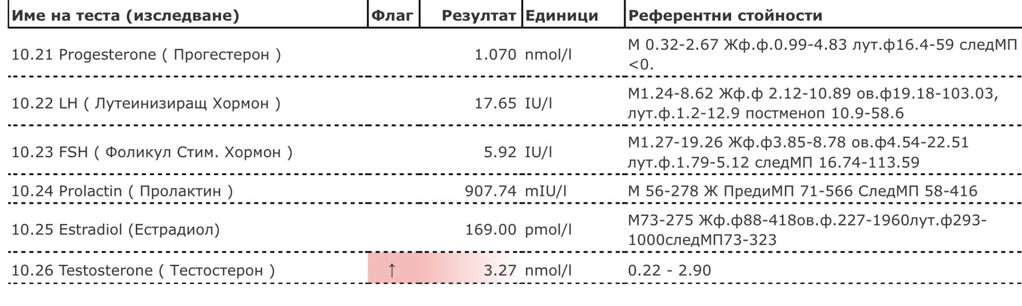 Моля за коментар на полови хормони на 3 ден от цикъла