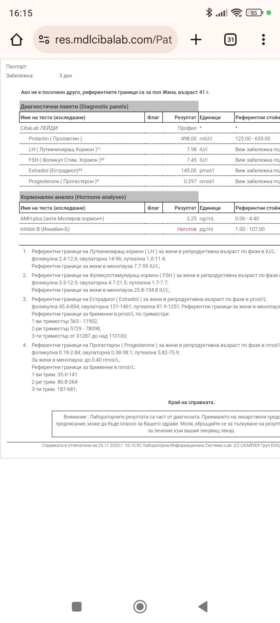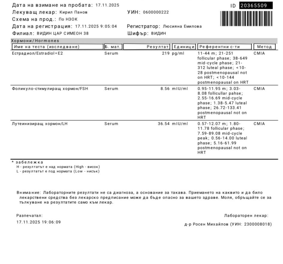 Здравейте, бихте ли коментирали следните резултати. Както е видно са правени на 3ти ден от МЦ и съм на 41