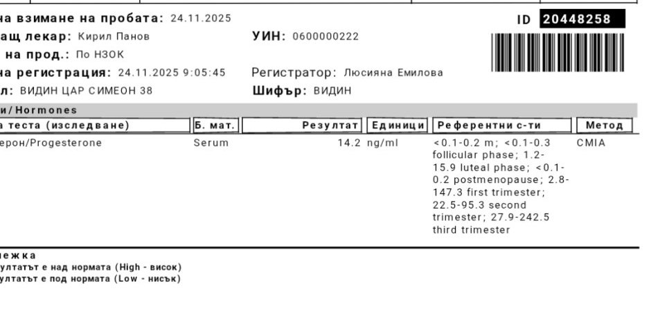 Току що излезе и прогестерона ми (7-ми ден след предполагаемата овулация, прикачвам и него. Извинявам се, ако спамя излишно, но и аз като всички се притеснявам и чакам с нетърпение да видя двете черти.. Благодаря много! ❤️