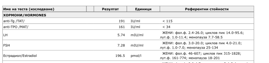 Здравейте, много ще съм благодарна на помощ за разчитане на резултатите. На 42 години съм с нередовен