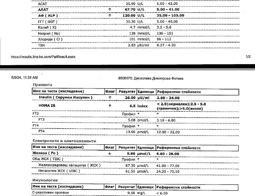 Feline, изходен инсулин на гладно е доста висок, HOMA индекс също, Вие сте за лекарство, не за добавка. Ако искате питайте ендокринолога д-р  Силвия Въндева, която отговаря на въпроси тук, в този форум.