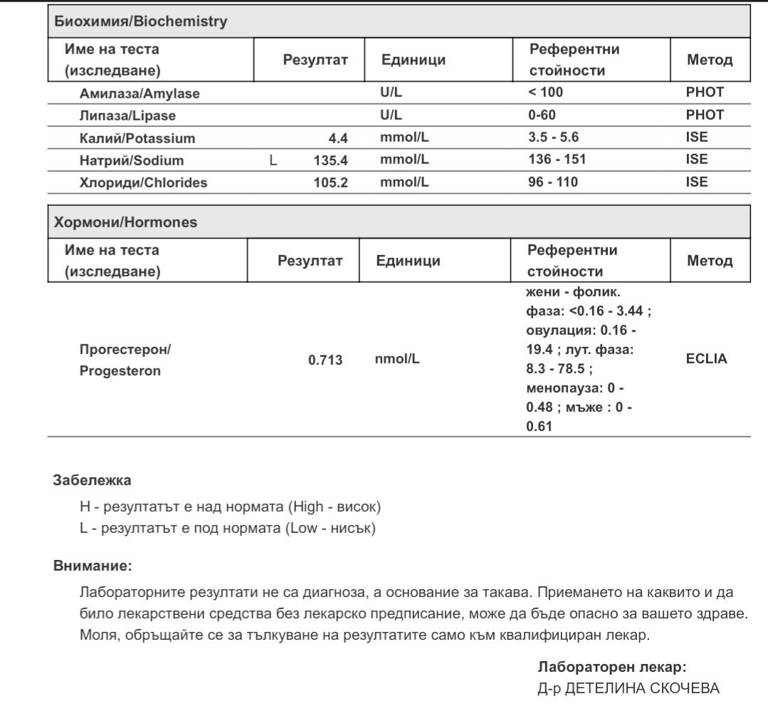 Хормоните са на 3ти ден от МЦ, а прогестерона, Калий, Натрий са от днес на 20ти ден от последния (подранил МЦ).