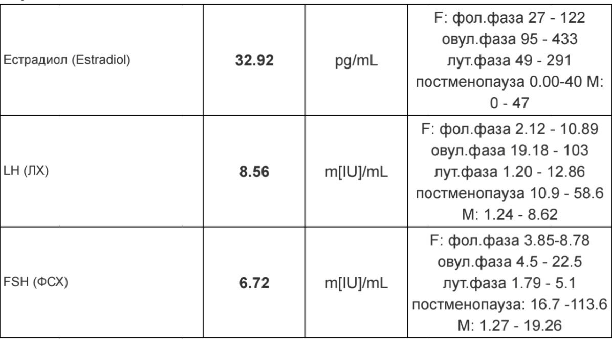 Това са те (17ОН Прогестерон ще е готов в сряда, както и Инхибин-Б):