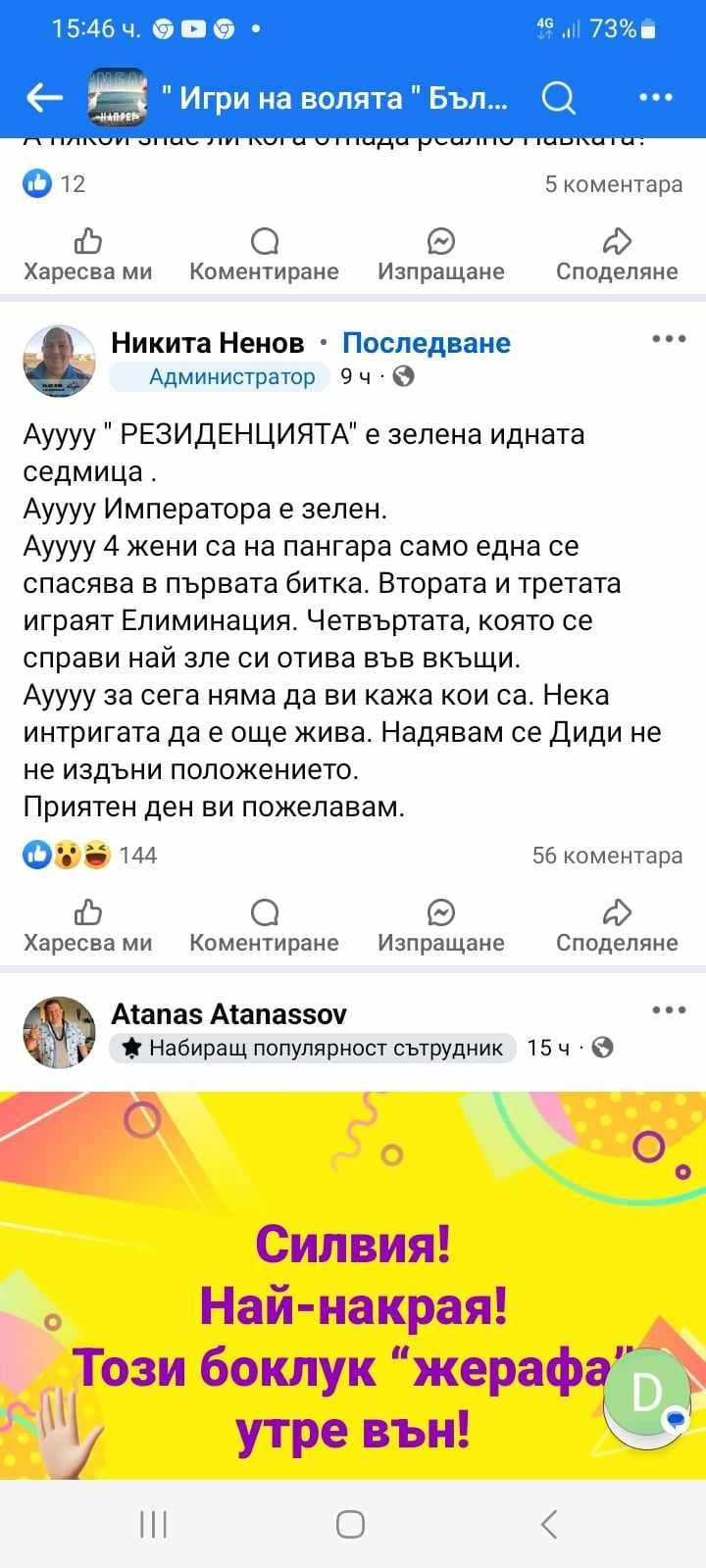 Писах и в основната тема, че видях стори в Инстаграм на една група за Телевизионни сериали и риалитита и там пишеше за финал на "Игри на волята" на 13.12, 20 ч. Досега каквото и да са написали, винаги е било точно.