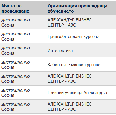 Здравей, аз бях подала за бизнес център Александър, но ми казаха, да избера друг доставчик, защото нз кога ще се организира курса. Насочиха ме към АБС, но аз се отказах и чакам тази седмица да почнем в Кабината, но за английски начален курс