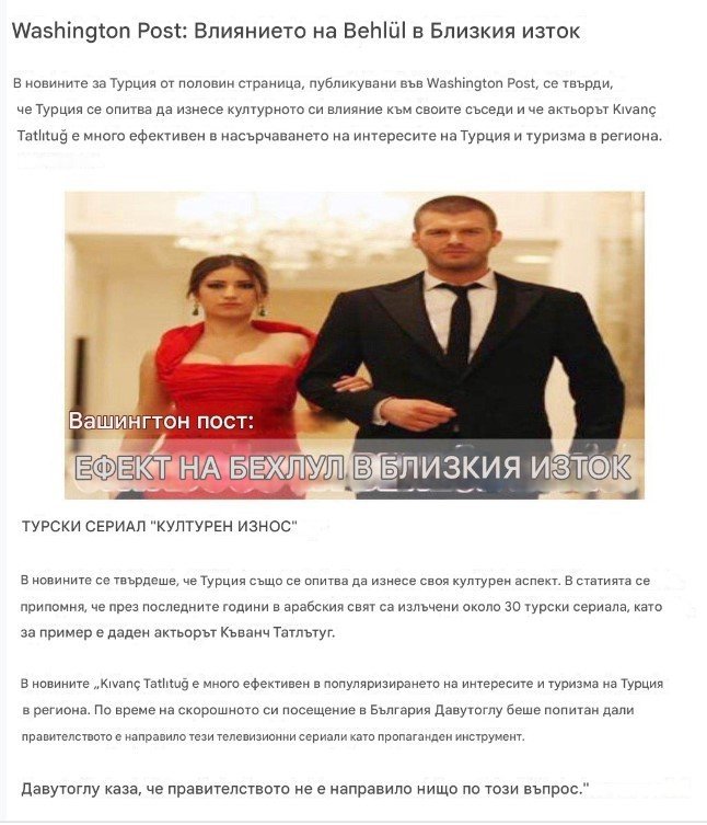 Във фейсбук страницата на Verissimo е публикувана статия за Къванч.