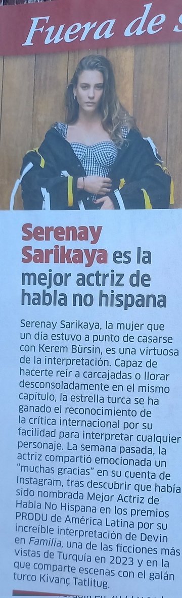 Миналата седмица актрисата развълнувано сподели "Благодаря ви много“ в профила си в Instagram, след като научи, че е била обявена за най-добра неиспаноговоряща актриса на испанските награди PRODU за невероятната й роля на Девин в един от най-популярните сериали " Family” и най-гледаният в Турция през 2023 г., в който тя играе с турския сърцеразбивач Kъванч Taтлъту.