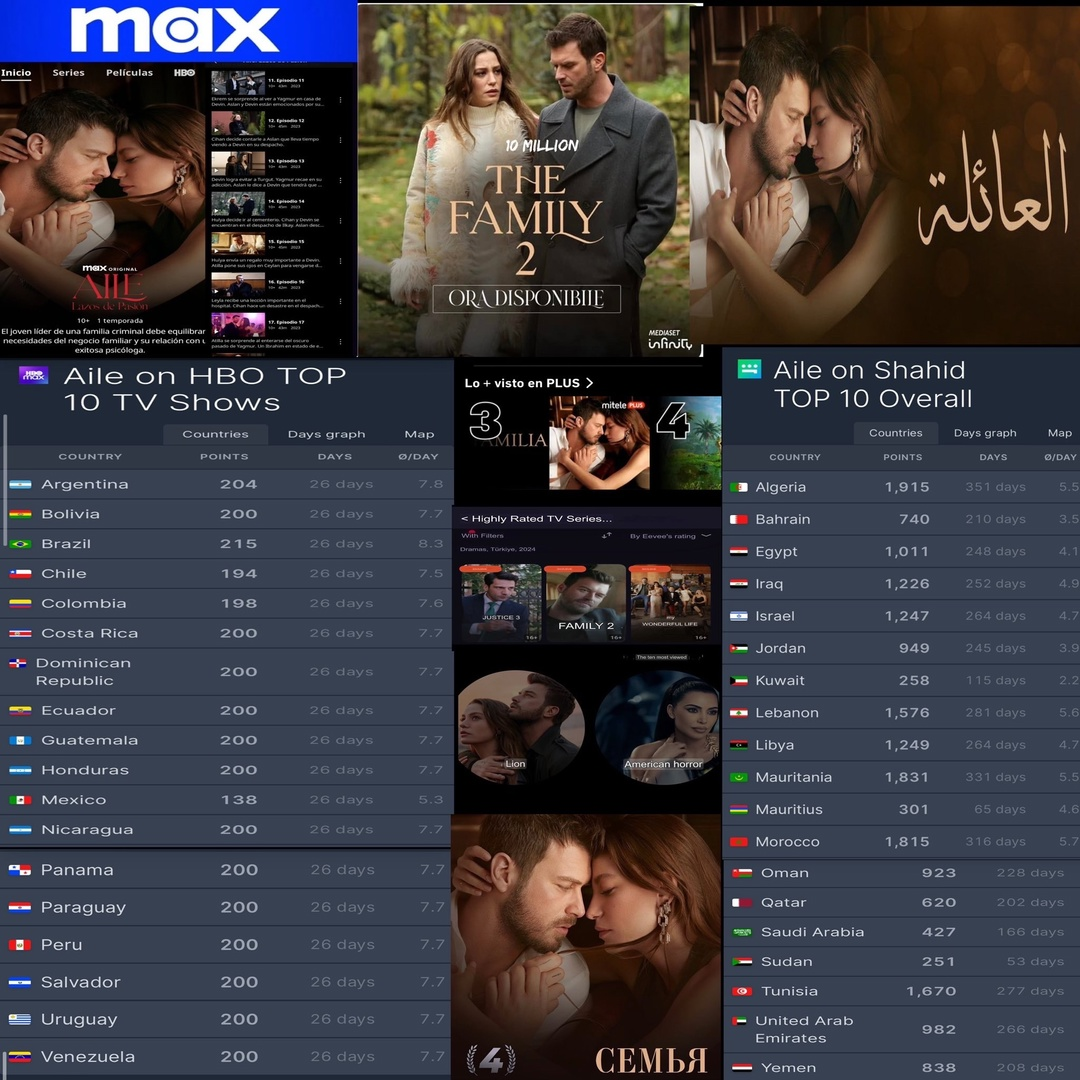 Безпрецедентен успех в света на сериала "Семейство“ с участието на Серенай Саръкая и Kъванч Taтлъту, в допълнение към колосалния му успех в рейтингите по телевизионните канали, където счупи исторически рекорди, той се появява и на цифрови платформи в 40 различни държави, голям успех в Русия (рейтинг на Kinopoisk -8.4, рейтинг на Ivy 8.4) арабските страни, Бразилия, Латинска Америка, Испания и Италия.