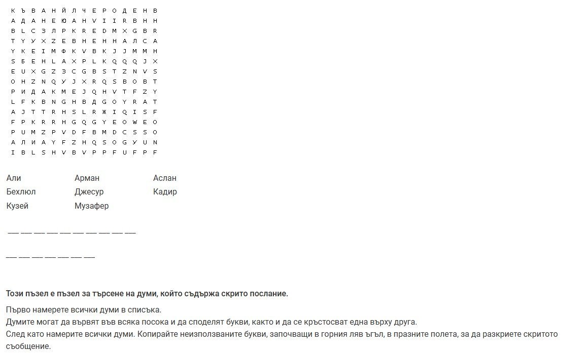 Пепи, много ми хареса загадката ти! Hands Plus1 Намерих всички думи, а скритото съобщение е :
