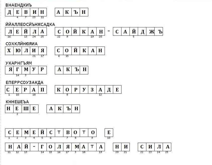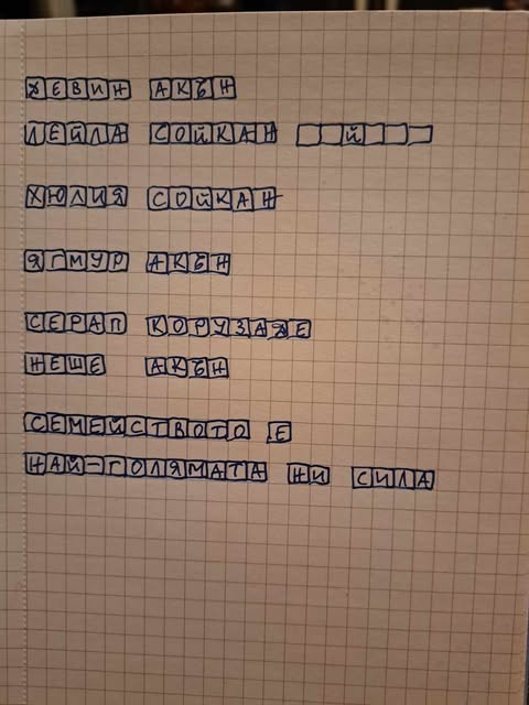 Направих ви задачка закачка, само с имена на част от жените в Семейството  накрая има изречение.