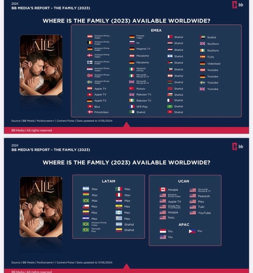 Според BB Media, платформите на които е достъпен сериала "Семейство“ в света