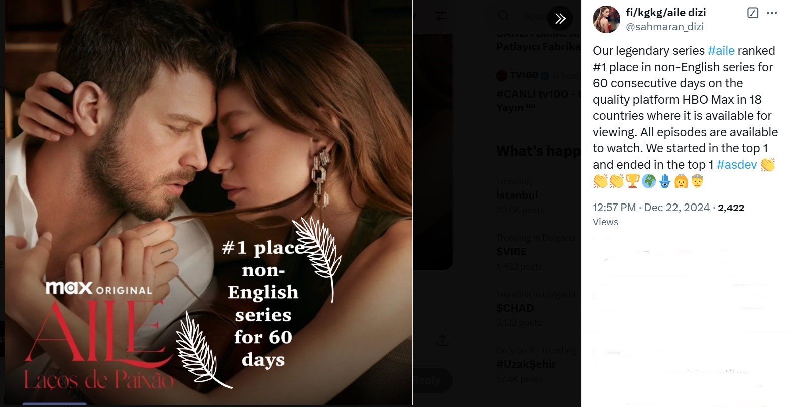 Нашият легендарен сериал #aile се класира на #1 място в неанглоезичните сериали за 60 последователни дни на качествената платформа HBO Max в 18 страни, където е достъпен за гледане. Всички епизоди са достъпни за гледане. Започнахме в топ 1 и завършихме в топ 1 #asdev 👏👏👏🏆🌍🪬👸🤴