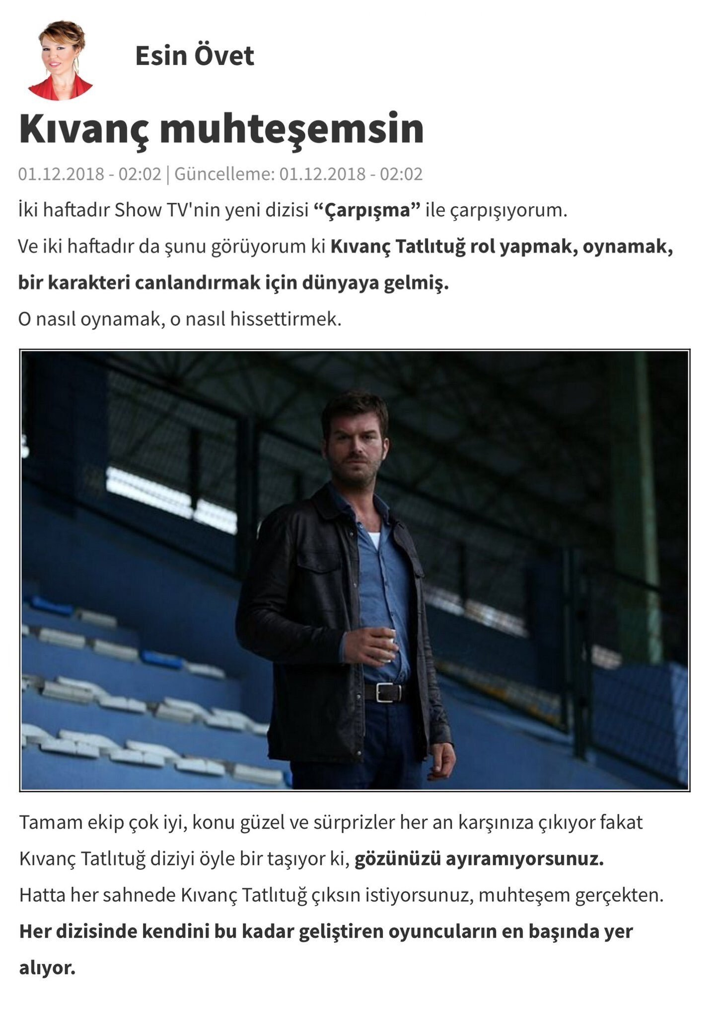 Онур : Интересна история и в нея има здрава опора, такава в местните сериали има рядко. На първо място е важно, че имаме сценарист, който пише обикновено сценарии за филми - Али Айдън. Неговото майсторство е абсолютно друго. Режисьорът Улуч Байрактар е начело на всичко това. Всяка сцена, каква трябва да бъде, той я знае предварително. Имаме много добър технически екип и много добре подбран каст. Къванч, който живее в играта, който постоянно се опитва да направи така, че сцените да са още по-добри. Много е приятно да снимаш с него, много весело. Имаме прекрасни млади актьори - Алперен Дуймаз и Мелиса Аслъ Памук. Главната героиня се играе от Елчин Сангу. Тя също много самоотвержено работи и е добър партньор. И с Елчин и с Къванч работим за първи път, но независимо от това ние провеждаме в много приятна и комфортна обстановка снимките. Имаме също така такива майстори като Мустафа Угурлу и Еркан Джан. Когато има събран такъв каст, човек с голямо въодушевление отива на снимки и се старае да прави всичко още по-добре. Понякога се случва краката ти да не искат да ходят на снимачната площадка, а тук всички идваме с удоволствие.