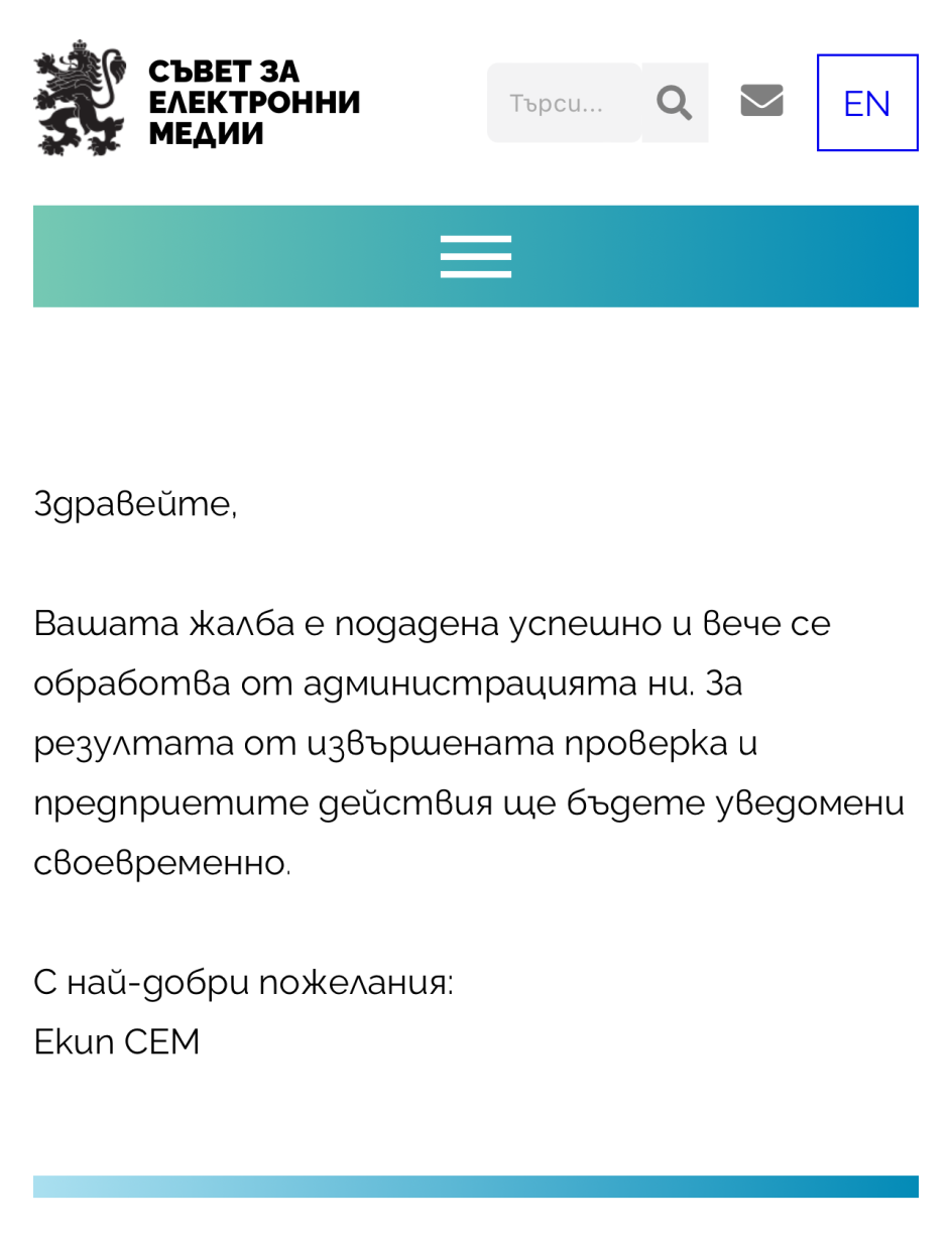 Аз пуснах оплакване до СЕМ тъкмо.