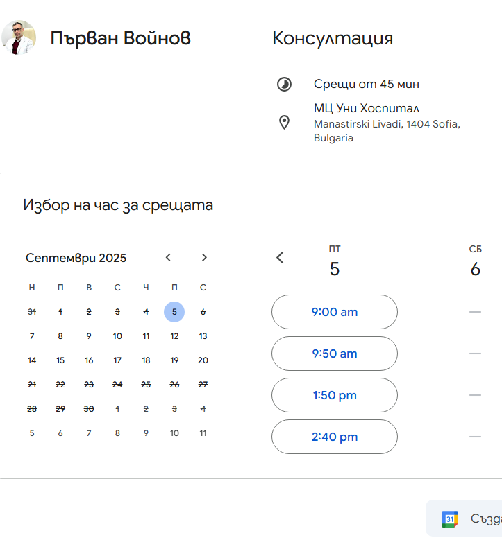 Между другото, освободих един час за 10 октомври, бях записала първо този час, но се появи по-скорошен и този остава излишен.