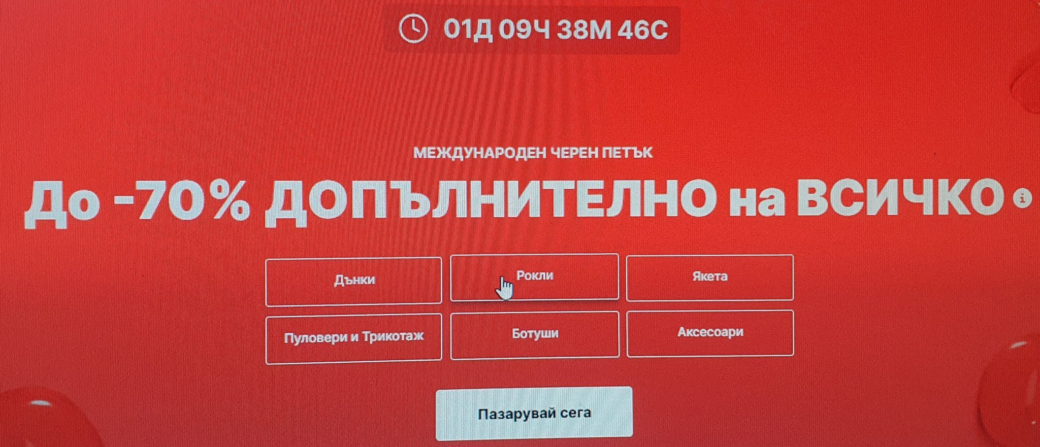Sportdepot , понеже мъжът ми си беше набелязал едни тениски от преди това и ми стояха в количката, та единственото реално намаление бяха 5% на кода, нищо че всички бяха намалени уж.