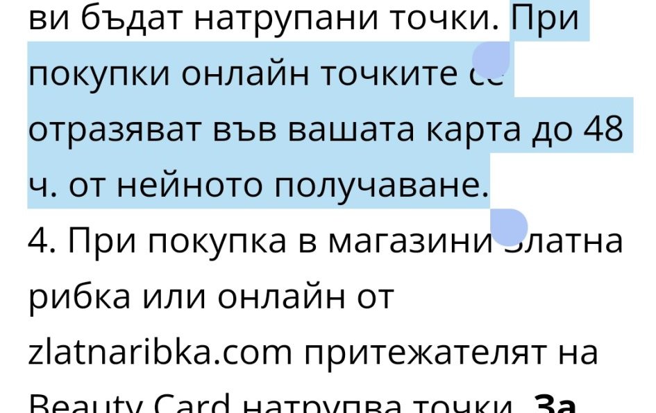 Точките се начисляват до 48ч след получаването на поръчката /поне така пише/. Моята взех в събота, а във вторник или сряда сутринта точките бяха отразени. Също използвах код за допълнителни -5%.