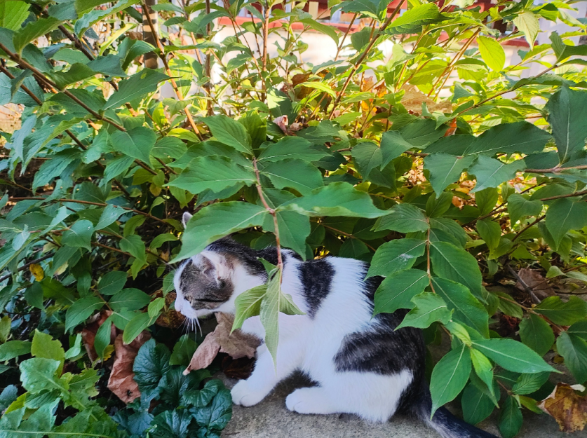 Лео по цял ден дивее на двора, не мога да направя една свястна снимка, защото постоянно бяга и се крие в храстите.