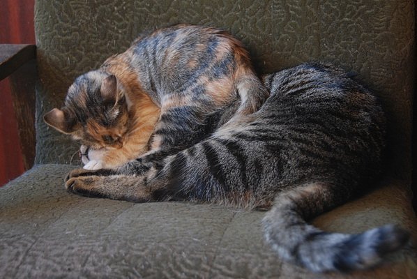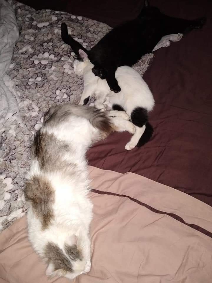 Имам приятелка, на която котката роди. След като малко станаха на около 3-4 месеца, започна да им ръмжи и да ги бие. И до сега, вече 2-3 години, ги мрази. Много странно. А моят, хем чужд, хем мъжкар - приема, обгрижва и обича.
